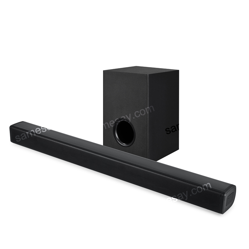 Звуковая панель Samesay SR190BG премиум-класса с выбираемым сабвуфером с проводным или беспроводным подключением, захватывающий басовый сабвуфер нового поколения, легко вписывается в вашу гостиную или спальню. Надежные и динамичные басы привлекают ваше внимание в каждом углу комнаты.