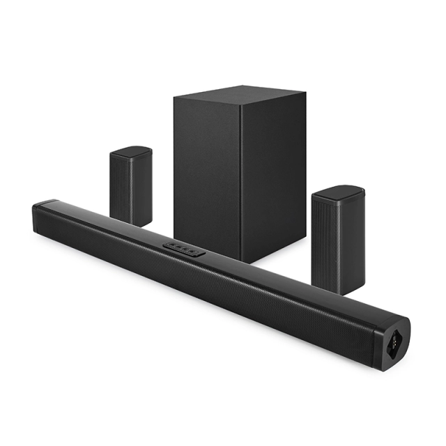 Запустите государство-в-арт 4.1CH объемного звучания звуковой панели системы домашнего кинотеатра SR419BG. Оснащен полным набором, включая звуковую панель, сабвуфер и два мини-спутника. Предметом обеспечения превосходного объемного звука с эффектом присутствия.